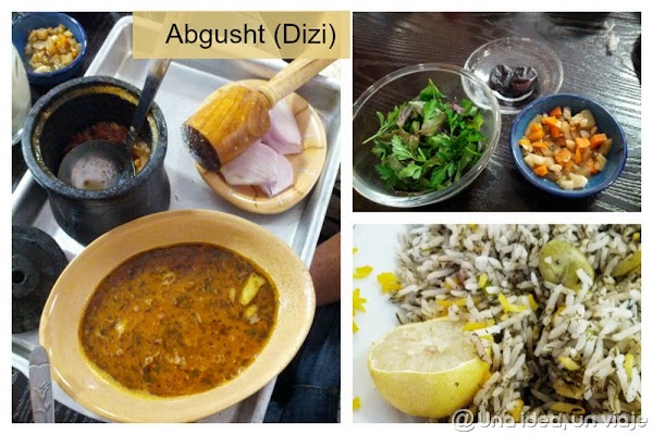 • Abgusht (también llamado dizi): estofado de cordero, patatas y garbanzos.
