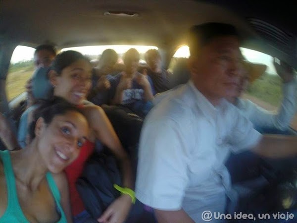 Cuando la chica de Chi Phat nos dijo que iríamos algo apretados en el coche, imaginábamos que tal vez sería una furgo pequeña. Lo que menos esperábamos es tener que pasar 3 horas metidos los 4 chicos en el asiento de detrás, Nuria y yo en el del copiloto… Y, ¡OJO! Un tipo con sombrero de cowboy compartiendo asiento con el conductor. Eso sí que es aprovechamiento del espacio y lo demás son tonterías. Fue una tortura de viaje pero… ¿y la anécdota? ¿qué pasa con la anécdota? :D