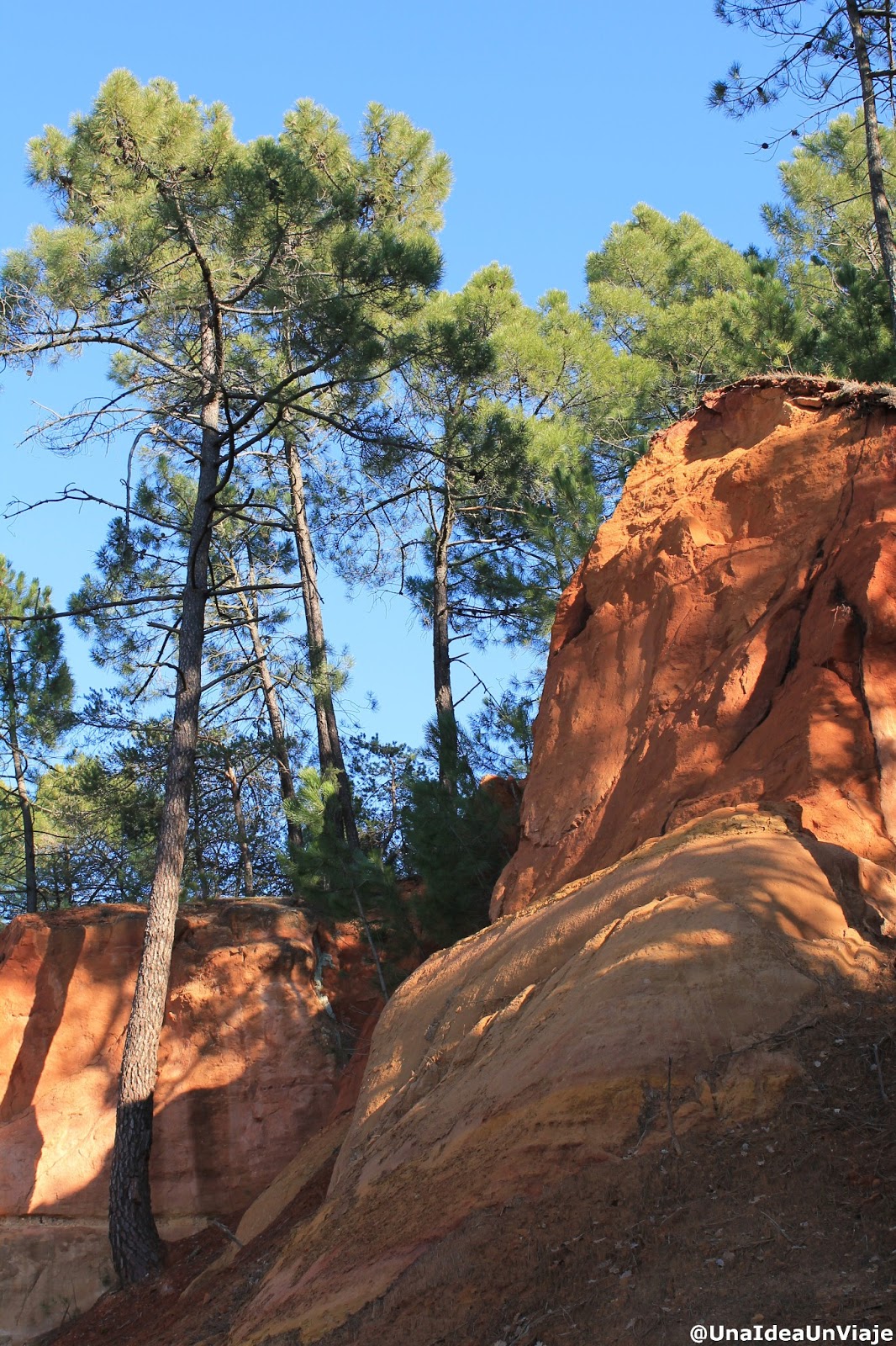 Dejando Lacoste, nos dirigimos hacia Roussillon, otro pueblo en otra colina cercana y que debe su nombre al color rojizo de los alrededores. Si alguna vez habéis estado en Las Médulas, en la provincia de León, notaréis que el paisaje es muy similar, de tierra roja. Pero es que además, todo el pueblo es rojo. Es un sitio muy chulo donde sin duda, merece la pena pararse. De hecho, esta zona es conocida como El Colorado de La Provenza. Por algo será, ¿no?