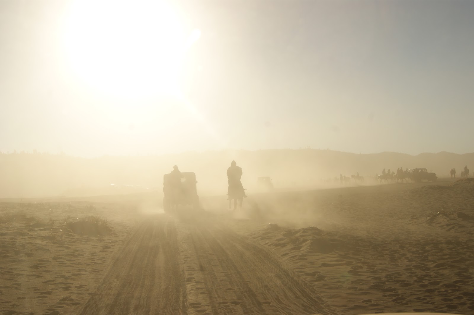 – DÍA 7: Los madrugones iban costando cada vez más, pero a mí siempre me hacía gracia decir «qué maravilla levantarse temprano, así sí que se aprovecha el día…» e ironías varias de las mías. Sin siquiera desayunar y en el medio de la plena oscuridad, nos metimos en uno de los todoterrenos que subían para el Bromo. Tardamos casi una hora en hacer un trayecto donde el camino cada vez era menos alentador. Montones, y cuando digo montones, hablo de al menos 150 todoterrenos, hacían la misma ruta que nosotros, llevando guiris a ver el amanecer…