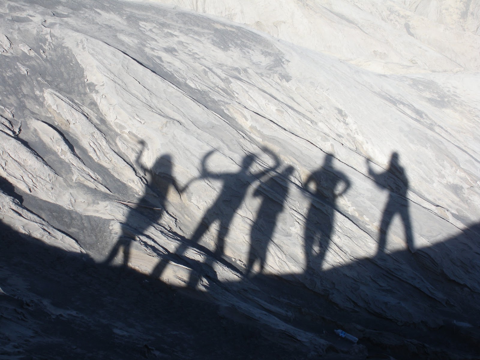 Los locales vendían ramos de flores secas para tirar al cráter y pedir deseos. Nosotros rechazamos la oferta, puesto que teníamos una ofrenda – sacrificio ritual mucho más apetecible: las gafas de sol de Diego, jajaja. La culpa fue mía, que por mi odio hacia una gorra horrible que tiene, superviviente a mil vivencias, para que no saliese en la foto con ella, se la quitó, y con ello se fueron por el aire las gafas que tenía apoyadas en ella… En fin, el dios Bromo lo agradecerá, jajajaja.